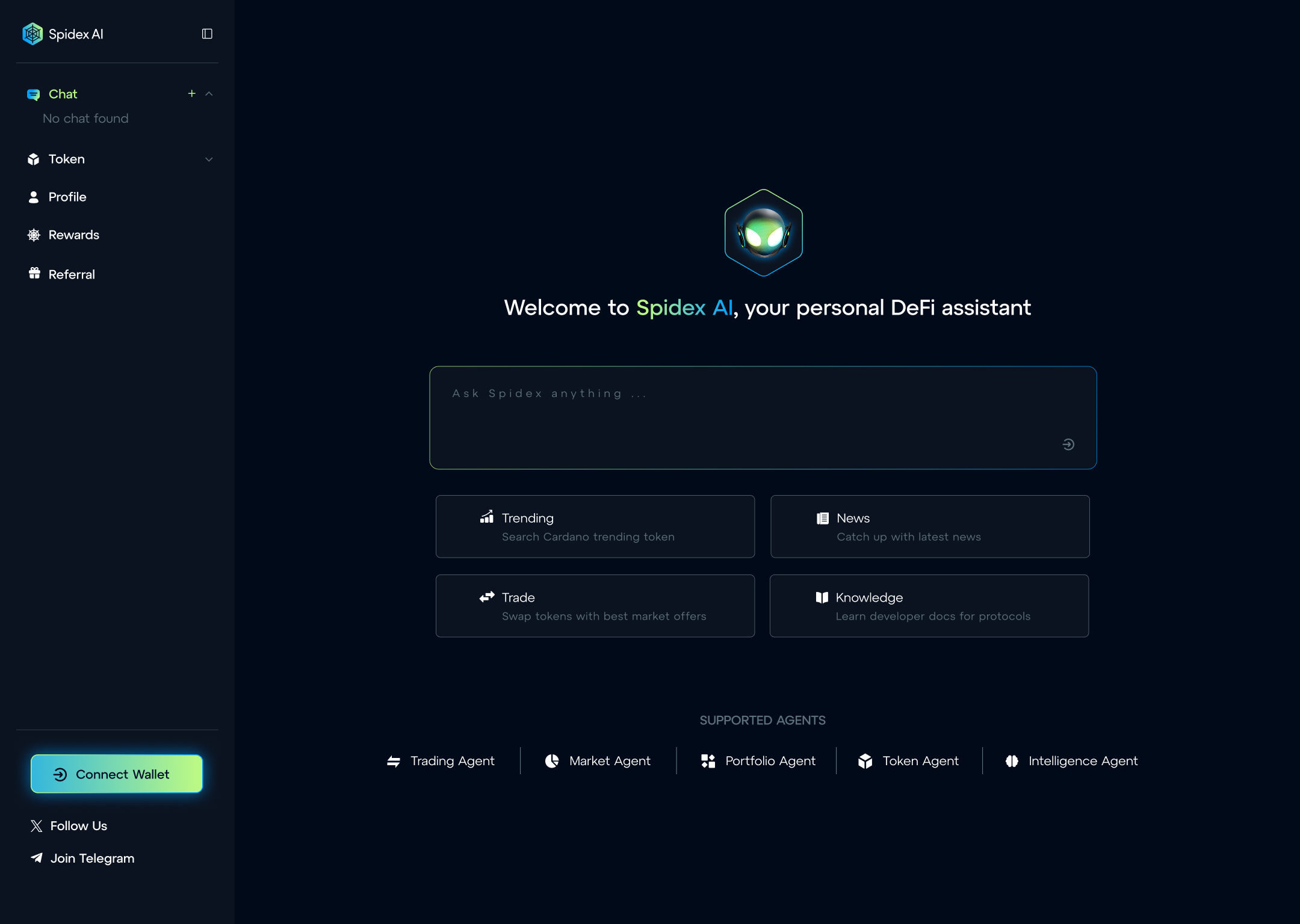 Positioning: Spidex AI is the intelligence layer for Cardano DeFi, where every user journey - from discovery to execution - is AI-assisted.