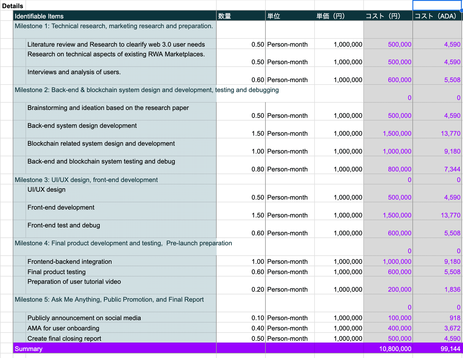 In summary, the requested funding will not only deliver a working MVP but also lay the foundation for real-world adoption of Cardano in one of the most institutionally conservative yet economically significant markets: Japan. The return—measured in TVL, on-chain activity, ADA use, and social impact—far outweighs the initial investment.