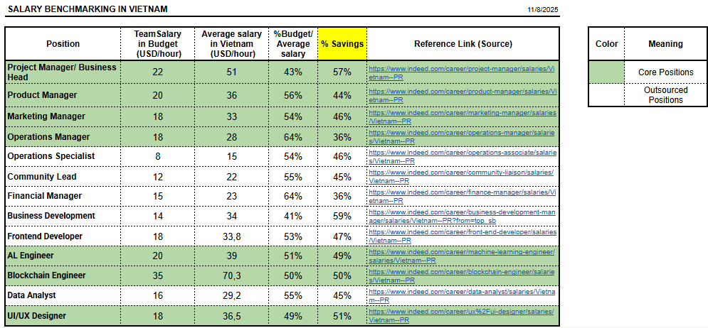 With the desire to have the opportunity to contribute to supporting Cardano, Catalyst to grow stronger, we will strive to work with a salary 36-57% lower than the average salary in the market. (please see salary benchmarking below)