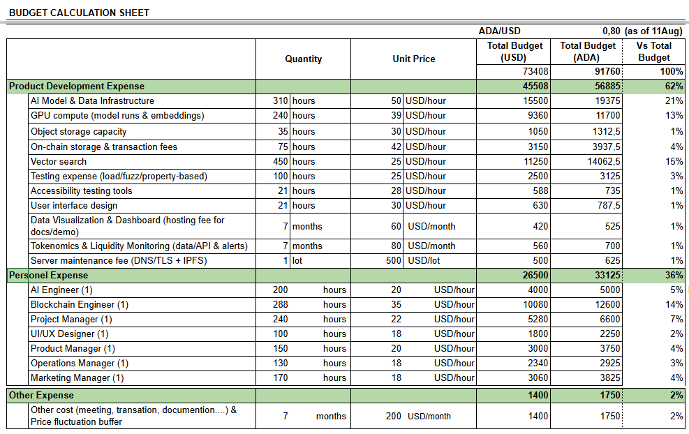 - Cost Efficiency: With approximately 91,760 ADA, the project delivers a long-term on-chain data infrastructure for the entire community, offering low maintenance costs and high utility value.