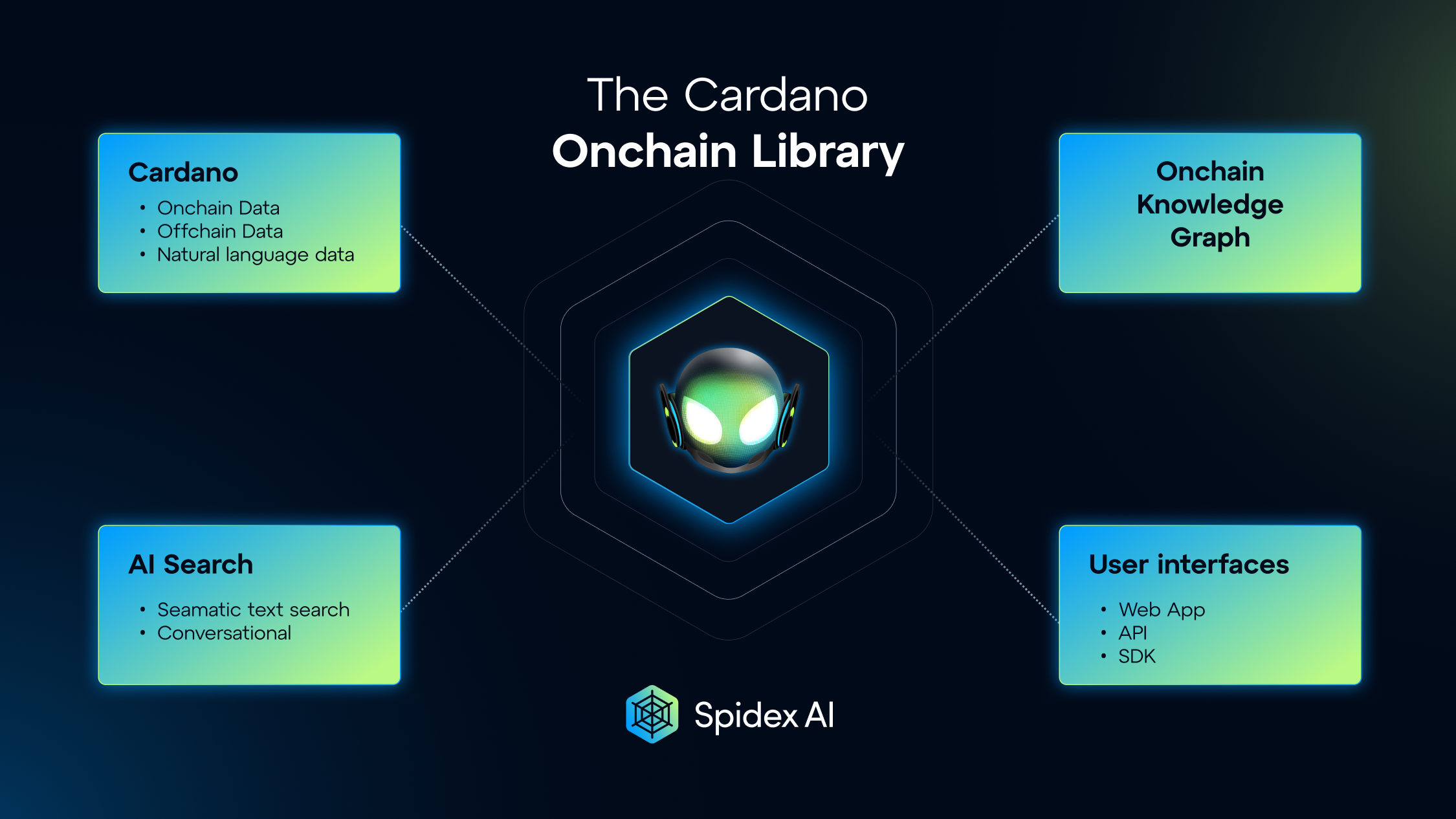 Spidex AI – On-chain Research Library will bridge critical gaps in the Cardano ecosystem by providing a permanent, AI-indexed, and on-chain repository of project and governance data. By consolidating fragmented information, enabling natural language queries, and visualizing relationships across projects and governance events, Spidex AI empowers developers, researchers, and community members to make data-driven decisions with confidence.