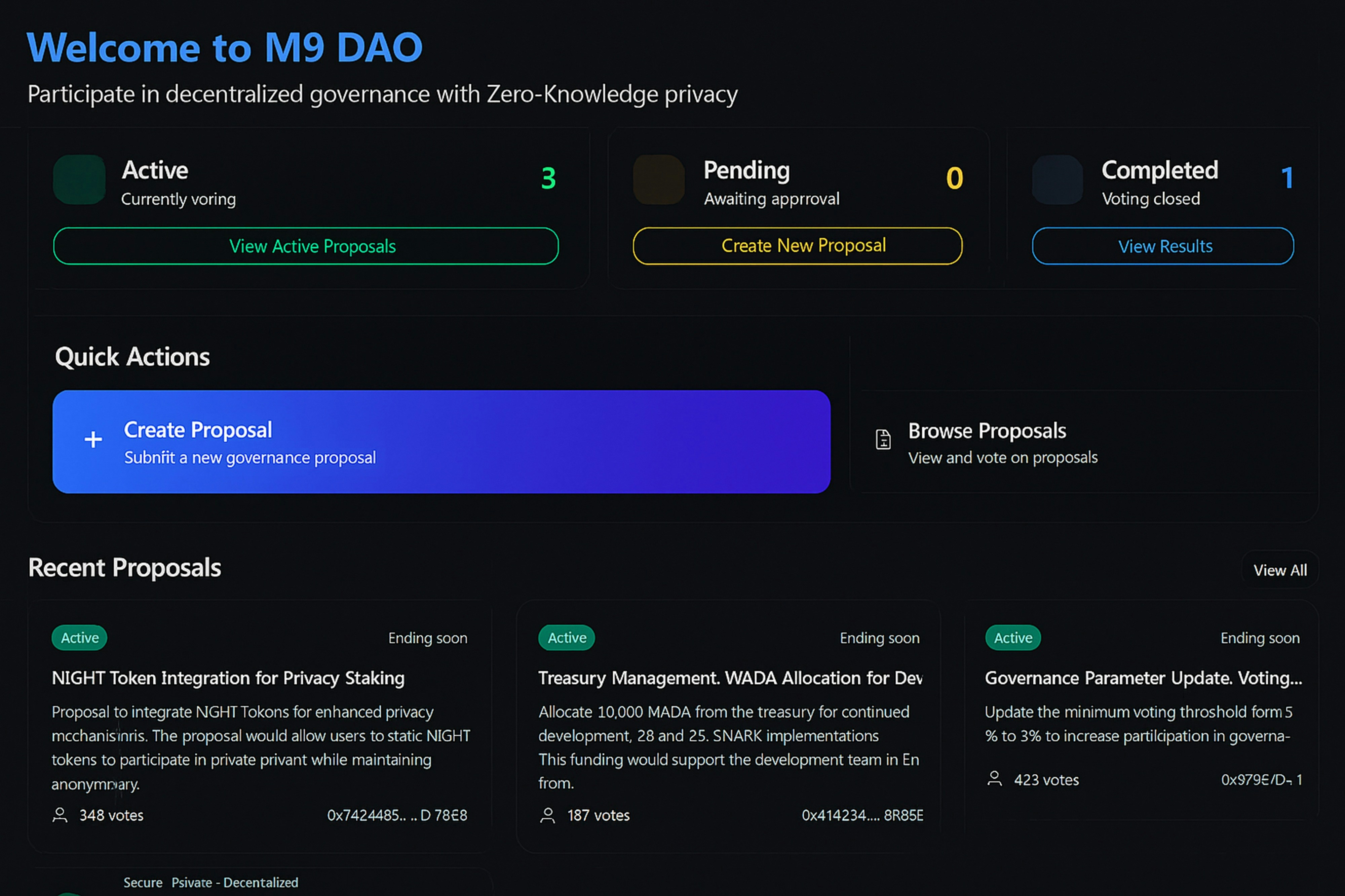 This project introduces the first fully anonymous, zero-knowledge DAO voting dApp built natively for Cardano’s ecosystem via Midnight. It addresses one of the most critical governance gaps — the lack of privacy in voting — which has been a limiting factor for enterprise and sensitive community use cases.