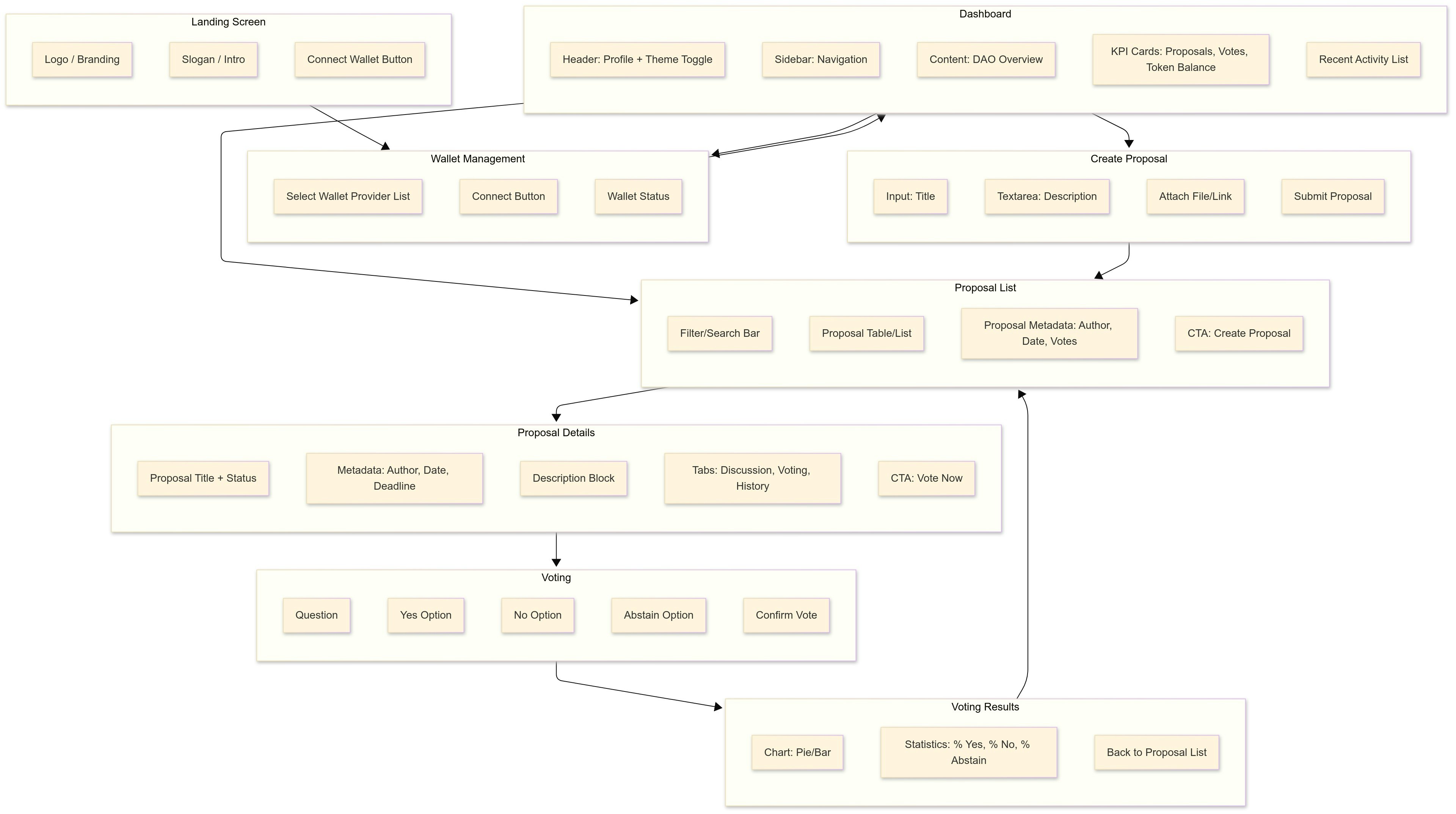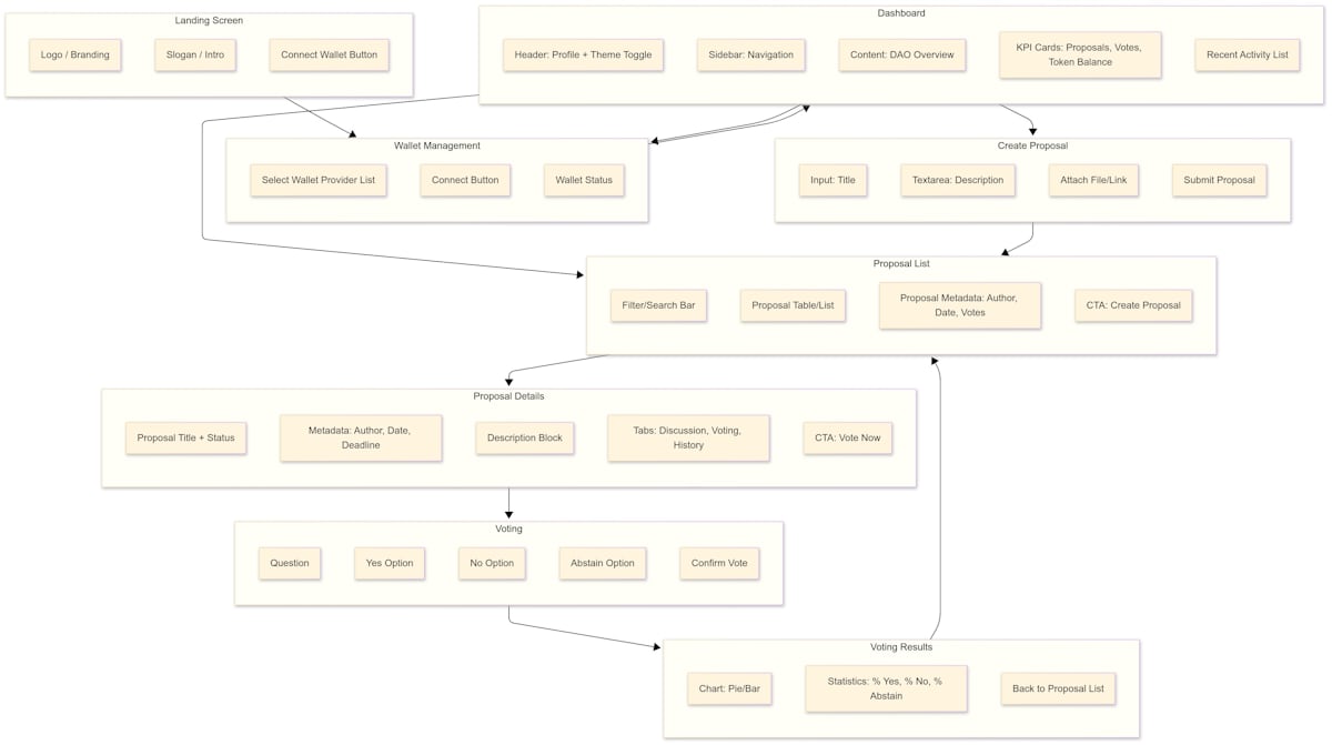 - Role-based support for core DAO participants (proposal creators, voters, observers)
