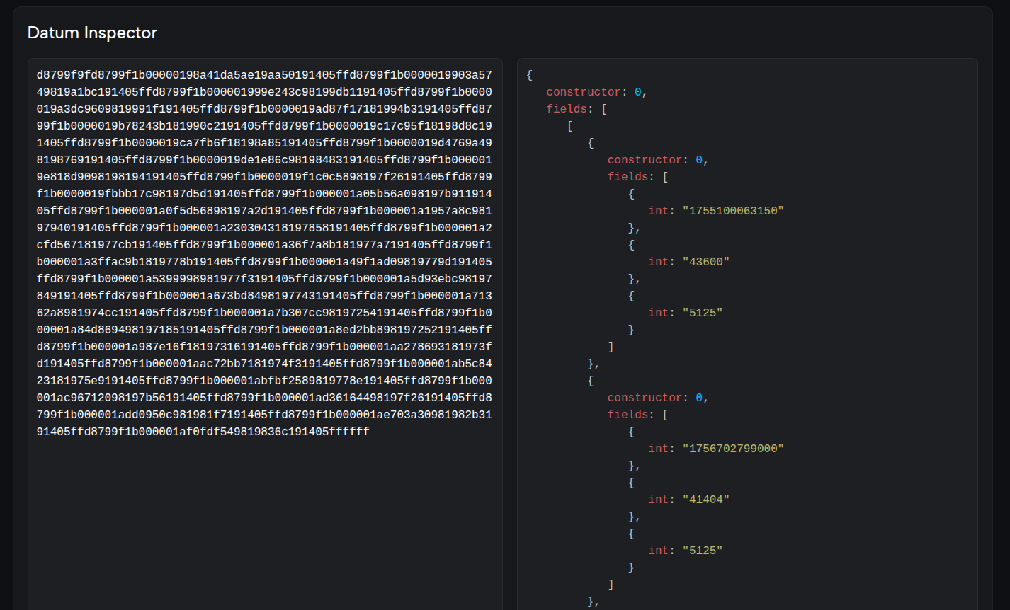 The next screen shows how the market data is pulled from external sources and processed (left-hand side) and then pushed into a UTXO on-chain as an Inline Datum