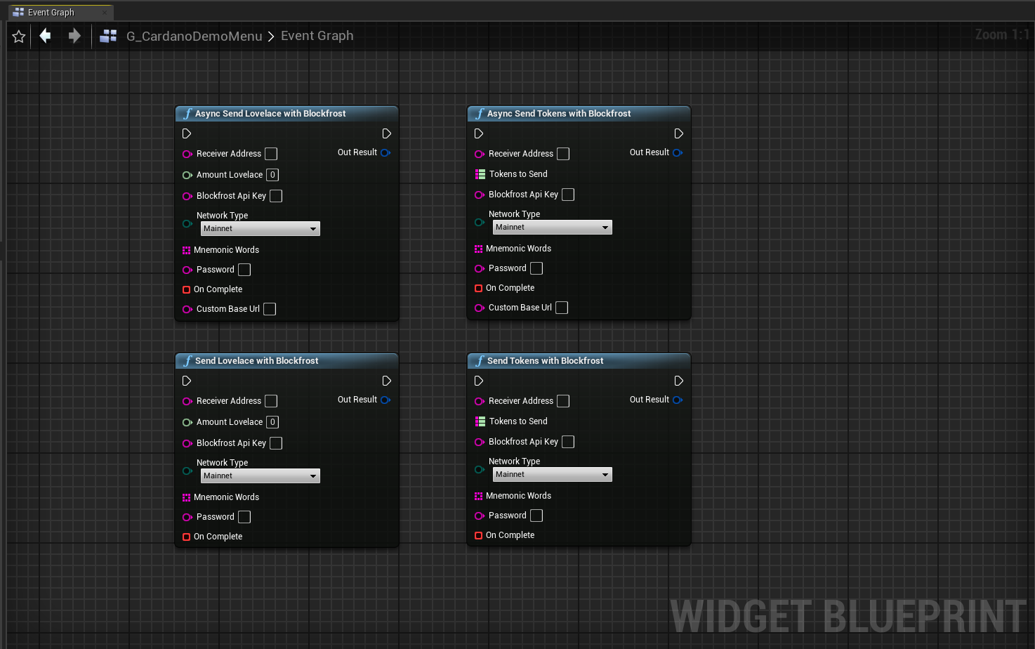 An easy-to-install Unreal Engine plugin that supports multiple Cardano blockchain providers, which can create and restore wallets without provider dependency. This plugin will provide multiple drag-and-drop blueprint functionality for wallet features