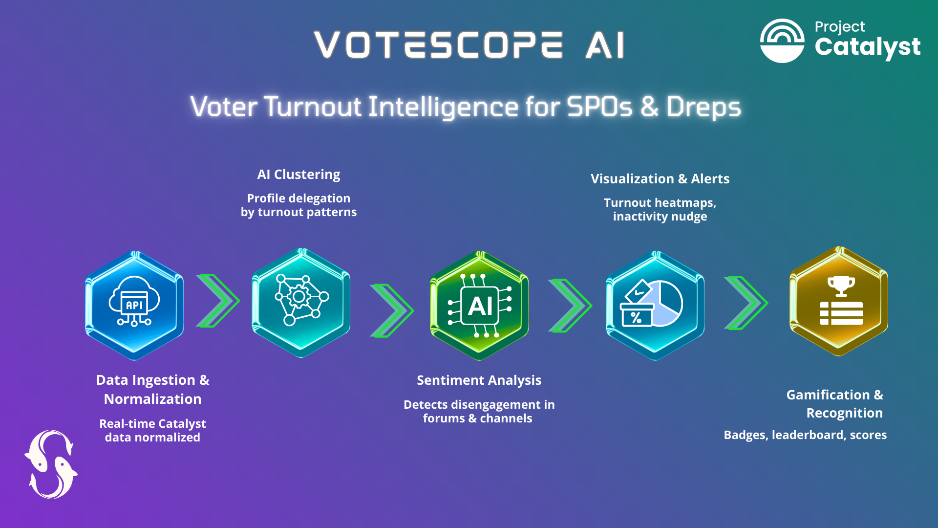 • Cross-Platform Governance Influence: VoteScope AI’s anonymized turnout insights could be adapted for other governance models, positioning Catalyst as a pioneer in turnout activation technology.
