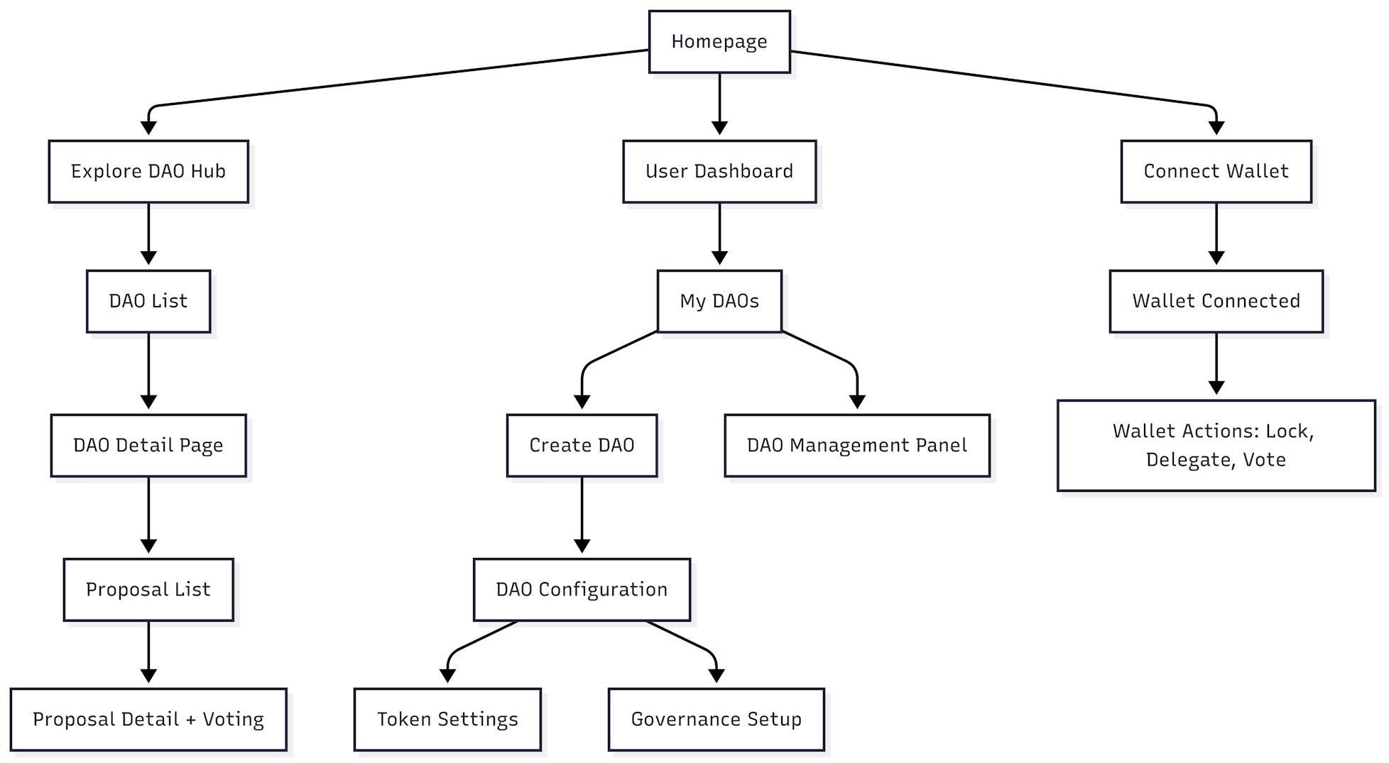 • A clean, guided UI/UX for creating and managing DAOs without coding.