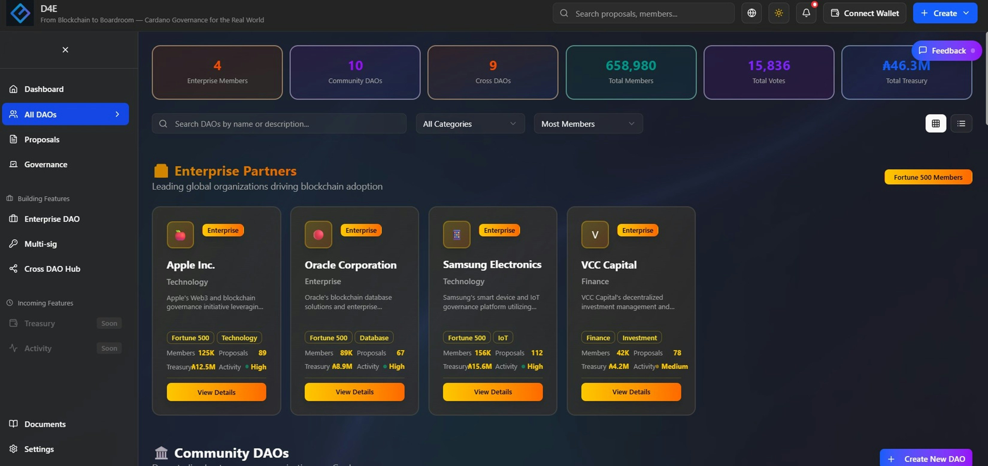 By delivering a DAO platform designed with real-world organizational needs in mind, D4E opens Cardano to enterprises, NGOs, and community groups who have not yet embraced blockchain governance. This expands Cardano’s use cases beyond crypto-native projects into mainstream sectors.