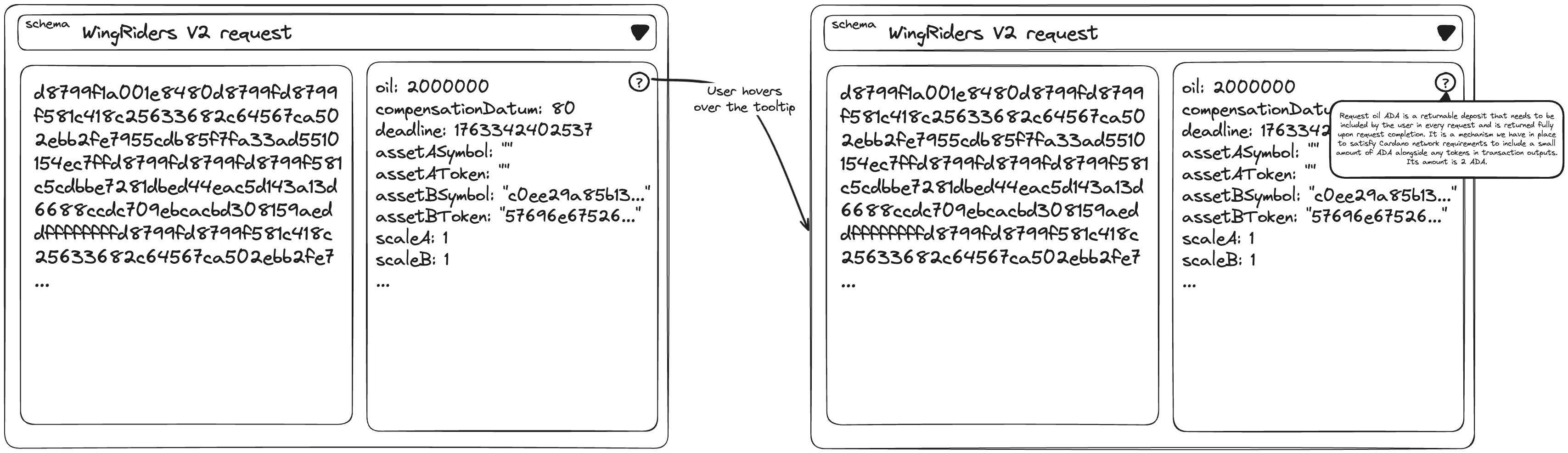 - **Comments as tooltips: **Comments embedded in CDDL schema definitions and Aiken code (“description” field in plutus.json) will be extracted and displayed as tooltips, helping users understand the meaning of specific fields at a glance.