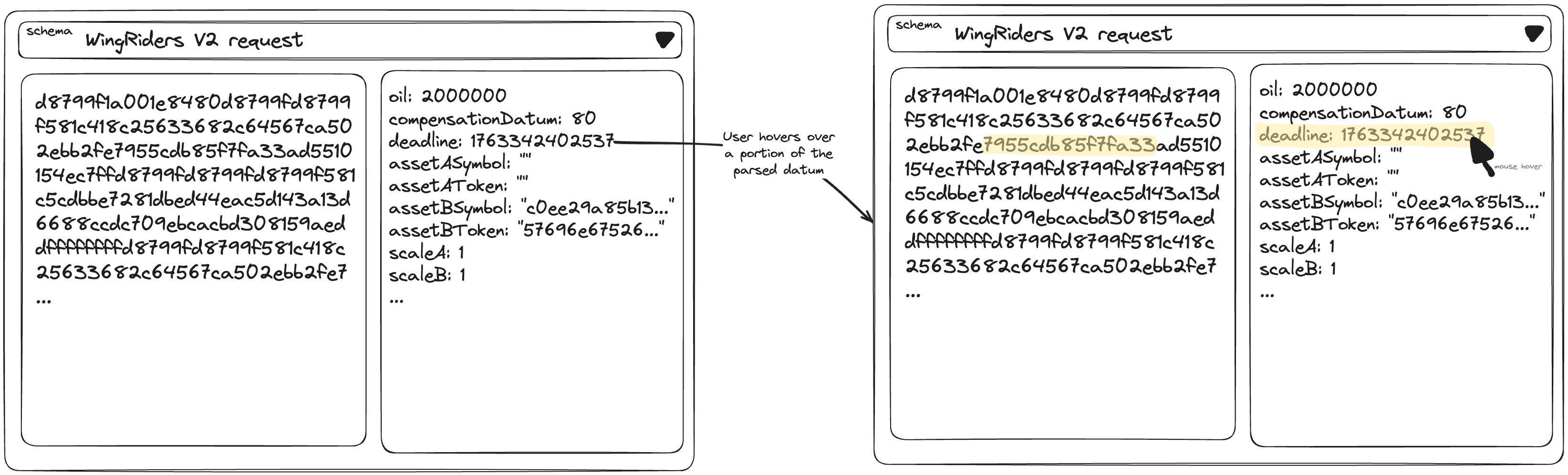 - hover over CBOR → highlights ReadableDatum field