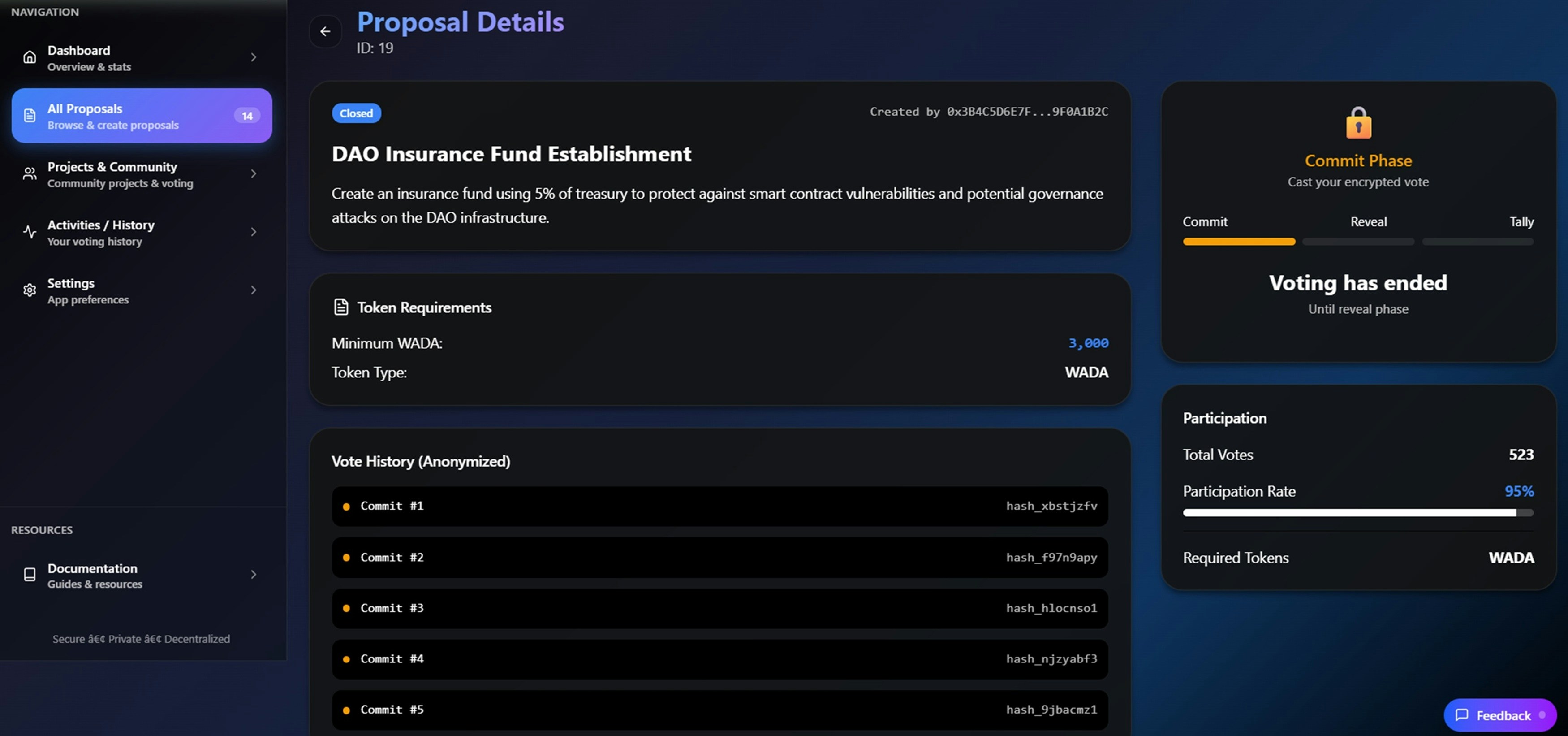 This solution modernizes DAO governance by ensuring that no voter identity or individual voting behavior is ever exposed, while still allowing the community to verify that all votes are valid.