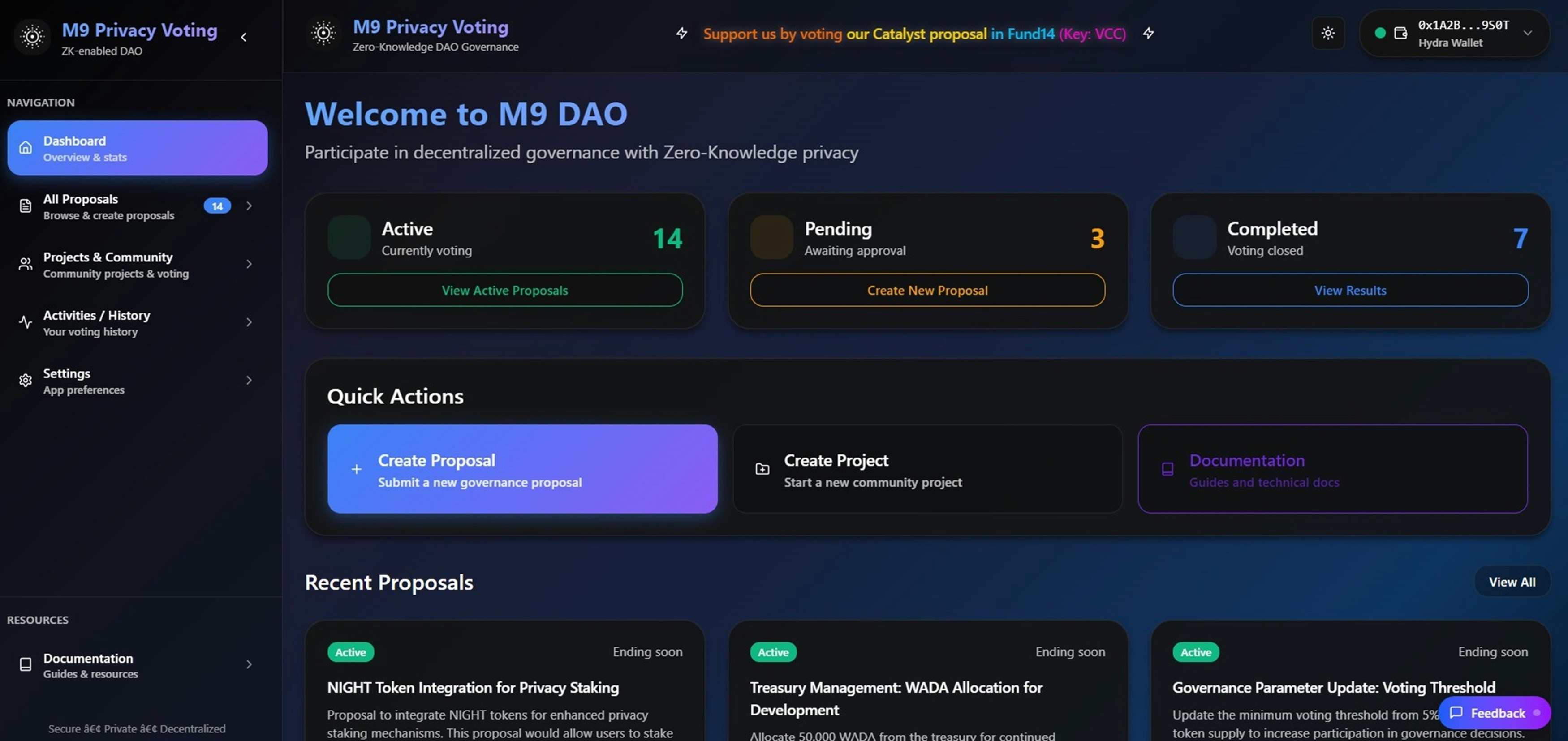 By pairing ZK proofs with a clean, intuitive UI/UX, the project lowers the barrier for non-technical DAO participants. This serves as a reference implementation for developers building privacy-first tools on Cardano and Midnight.