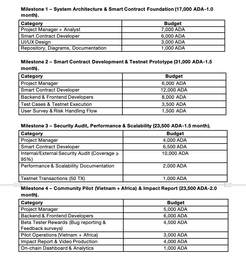 ROSCA Fund 15 – Milestone Budget Allocation (98,000 ADA).
