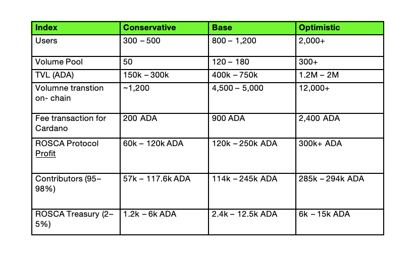 In the first 6 months of mainnet operation, ROSCA expects to create a real and measurable impact on the Cardano ecosystem: