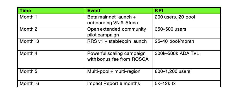 1.KPI Table First 6 Months After Mainnet – ROSCA